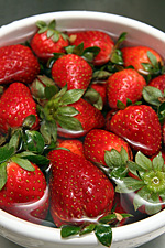 for dinner i cooked up some more peking raviolis and then ate a whole box of strawberries for dessert.