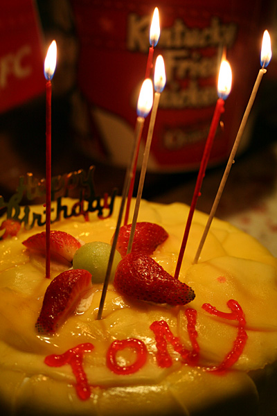 later in the evening my father came to pick me up and we went to the KFC down beacon-hampshire street to get order some fried chicken. we went back to belmont where i had dinner with my family, followed by a surprise mango-flavored birthday cake.