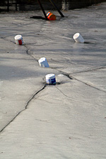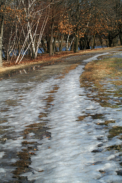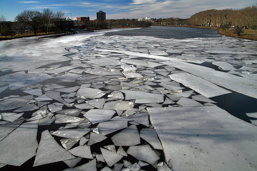 it was back to running again this morning. temperature was in the 30's with a strong wind so it was brisk outside, but i gradually warmed up after about 10 minutes. the past week of above freezing temperature did much to thaw the river, leaving large geometric shards of melting ice. over the eliot bridge i spotted the pair of hooded mergansers from wednesday, as well as a trio of common mergansers (2 females and a male). the commons seemed to be weary of my presence and soon flew away when i stopped to watch. i ran for the most part today, stopping only to walk across the two bridges. i noticed they re-installed the drinking fountain on wednesday but it wasn't turned on yet.