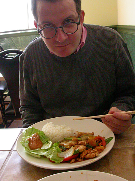 bruce brought along his briefcase so i knew he had some business afterwards. their menu was a visual overload of choices; is there anything thai or vietnamese they don't have? we played it safe and ordered from the lunch combo menu, bruce going with a cashew chicken will i decided on the gra paw (stir-fried minced chicken). i asked bruce if he could look after my fish next week, and he told he was going to bavaria near the end of march for a conference. the appetizers and soup were good, but i found the main course a little too strong in flavor (i couldn't really tell if i really was eating chicken). nevertheless, there are so many other choices on the menu that i'd need to revisit this place a few times before i can voice an honest opinion.