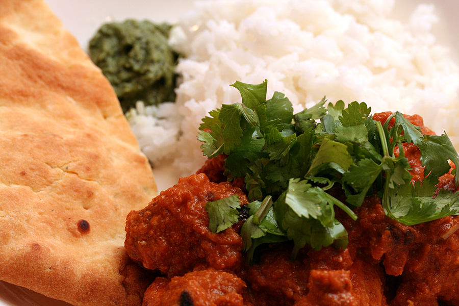 i made some chicken tikka masala for dinner. i haven't cooked in a while, it's good to get back into the game, especially now that the weather is starting to warm up and it's a lot easier for me to get groceries with the motorcycle. i'd prepared the chicken earlier, cut the breasts into cubes and marinated them in a yogurt + tikka sauce combo. i ended up broiling the skewered pieces of chicken, even though the recipe called for medium grilling (i just had to make sure i turned the skewers to prevent burning). instead of basmati rice, i just had long-grain rice. it was a tasty dinner, but the tastiest thing was the ready-made spicy coriander chutney i got from the indian grocery store. i ended up with enough leftovers that i'll probably be eating chicken tikka masala until the end of this week.