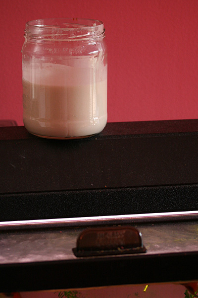 today i began a starter culture for the sourdough bread i want to make. a cup of warm water and a cup of flour went into a clean glass jar. airborne yeast cells seem to thrive where its warm, but there are very few warm places in my house. i finally decided to put my starter jar on top of the warmish (70°F) aquarium light. i just hope i don't end up growing some weird aquatic algae culture in there. the real hardcore sourdough makers leave their starter outside, to capture some of the wild native yeast. maybe i might do that during the summer, when the weather is warmer.