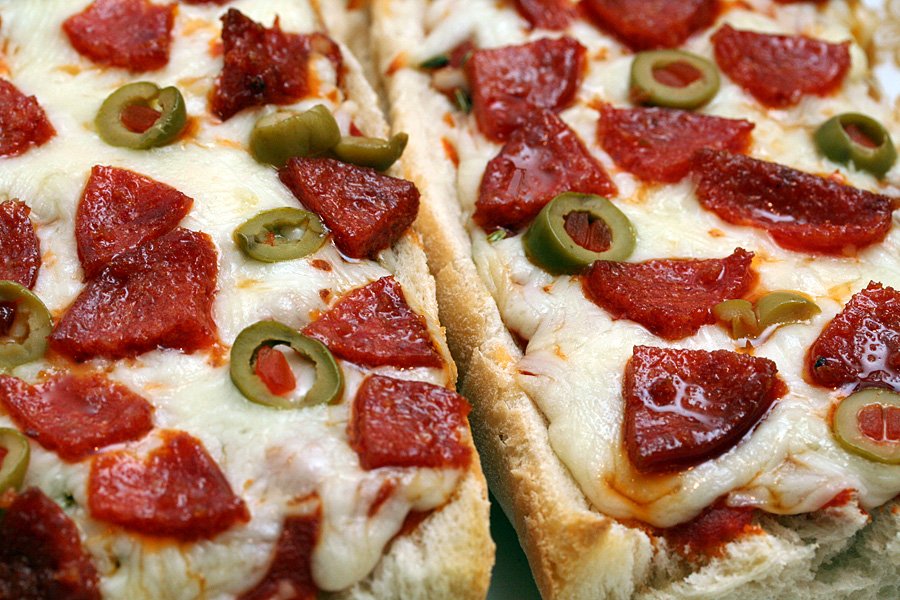 as advertised, i made some french bread pizza for dinner. two halves were too little, and 4 pieces was too much.