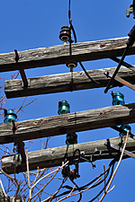i wonder if the folks living on ash street even notice the glass insulators adorning their utility poles. how old are these things? and if one breaks, does the utility company replace them with another glass one or one of the newer ceramic/plastic variety? how much is one glass insulator worth, anyway?