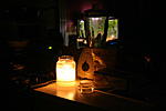 when i got back home, there was still 30 minutes left in earth hour. in doing my part, i abstained from turning on the lights (instead i lit a candle), although i did surf the web a little bit on my laptop (does the glow of the LCD count as a light source?). for dinner i made some more french bread pizza, this time going with pepperoni and onion slices. washed it down with some coffee milk, then had a pear for dessert.