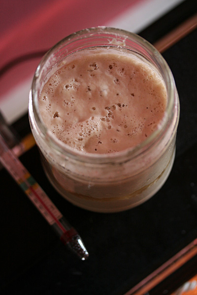the directions i followed said it'd take 3-4 days for my sourdough starter to be ready. sure enough, this being day 3, my starter had bubbles. however, it smelled like vomit. that's a good thing though, right? and the layer of yellowish water floating on top of the mixture? that might be a relatively harmless alcoholic byproduct (hooch). i still wasn't quite sure if it's completely ready yet, so i'm going to feed it for one more day and leave it out to see what happens.