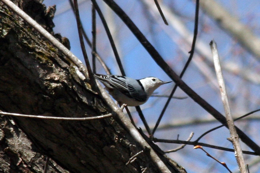 one advantage of the sparse early spring vegetation is it's a lot easier to spot birds hiding in the treetops. recently i've been dreaming about owning a 400mm telephoto lens, because even with my 300mm i'm still pushing it to try and resolve any bird details. the most interesting wild birds i saw today was a belted kingfisher (male) and an unidentifiable warbler.