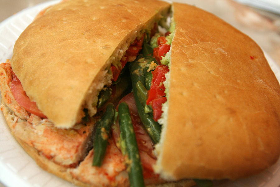 i'd forgotten about chacarero, that chilean sandwich place in downtown crossing. back in my early screen house days (we're talking the 20th century here), this was one of my favorite places to eat. we'd called it the chicken shack for some reason, and made the lunchtime pilgrimage to wait in the long line to get a sandwich. the last time i went there was back in april 2004, so it's been a half decade hiatus. since that time the filene building that used to house the chicken shack had been demolished. dan instant messaged me this morning asking if i wanted to go. this being his final week in town before he moves, it'd be one of my last few opportunities to see him.