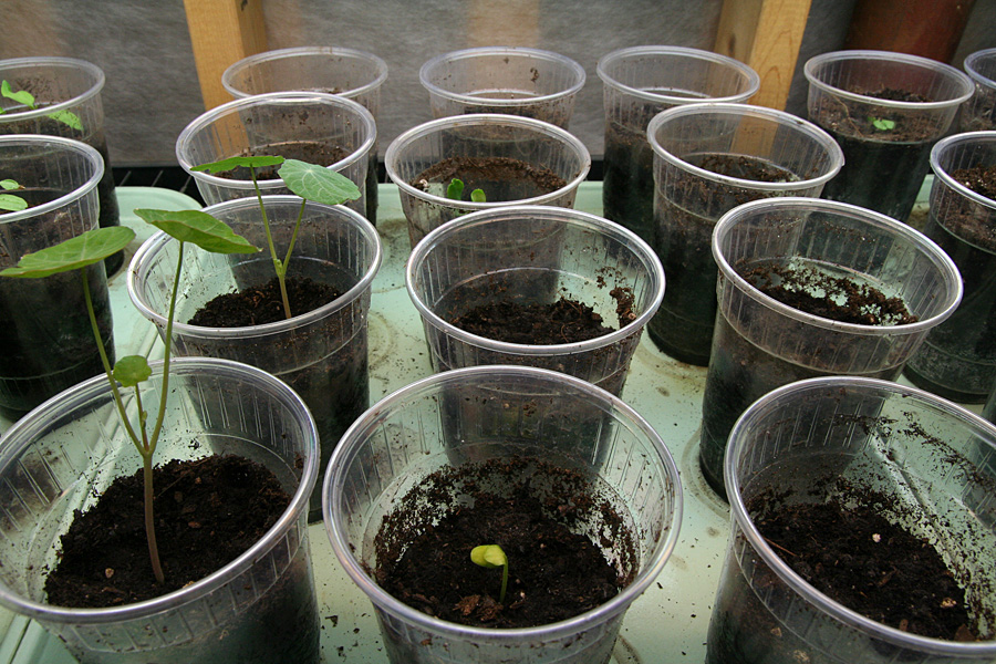 it'd been 6 days since i last checked on the seedlings growing in my parents' cafe basement. i had this fear that they had all dried up and died so i was surprised to find them growing well. the last time i saw only basil and possibly cilantro; less than a week later, all the tomatoes and tomatillos have sprouted, as well as the nasturtiums. i'd wanted to move to my place, but since they seem to be doing okay in the cafe, i just might leave them there until they're ready to be transplanted outside. i also gave the leftover chicken shack sandwich to my mother and aunt. they liked it but my mother said it was too spicy.