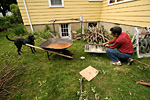 when i wasn't shooting, i was busy digging up dandelions while my father was bundling up all the twigs and branches for garden refuse recycling. since it rained a little bit earlier today, the ground was soft so the weeds were easier to dig out. nevertheless, i only managed to make a small dent in the dandelion population. later my father mowed the lawn, which chopped up a lot of weeds but it's only a temporary fix because they'll grow out again in a few more weeks.