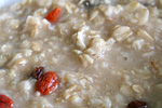 when i can't think of anything better to eat for breakfast/lunch, i fall back on oatmeal. recently i've been mixing in some goji berries along with the raisins. goji berries taste sort of like raisins, but they add a touch of color and supposedly are rich in antioxidants. as if oatmeal can be made healthier!