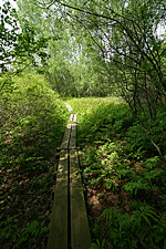 getting there wasn't very hard, i just headed west on route 20 through waltham and beyond, and then north along route 126 until i got to the lutheran church; the entrance to the reservation is actually hidden in the back. the church parking lot was completely empty, which is a good sign that i can nature undisturbed. today was a warm day with temperature in the 80's, so i just had on a t-shirt. it didn't taken me long before i had to spray myself down with insect repellent and put on a light windbreaker, which i also brought along. i was already hearing the buzzing of hungry mosquitoes, and since i'd be walking into some pretty marshy area, i assumed it'd only get worse. better to be slightly warm than to be constantly fed upon by bugs.
