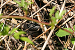 further along, between markers P and J, i almost stepped on a small garter snake (18" long). it was just lying on the trail, it's head poking through a dead leaf. it was pretty tame and i got a bunch of photos. i was tempted to pick it up but decided otherwise. (compare and contrast the garter snake with the ribbon snake).