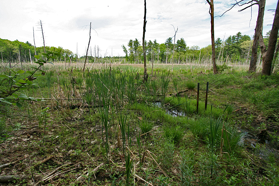 it's been more than a month since my last nature outing (i went to oxbow NWR), not counting a visit to the arnold arboretum. naturing is what i like to do during my downtime, so it's nice to get back to business. originally i wanted to visit flat rock in fitchburg, but it was already noontime and by the time i got there it'd be almost 2:00. instead i looked for someplace closer, which is easier said than done, since i've visited a lot of local nature spots already. i finally found a place in wayland i've never seen before, upper mill brook reservation. although only 60 acres, it was the diversity of environments that attracted me: woodlands, swamps, and ponds.