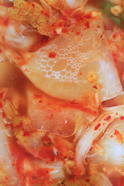 i've been carefully monitoring the progress of my kimchee. i saw a few tiny bubbles yesterday,