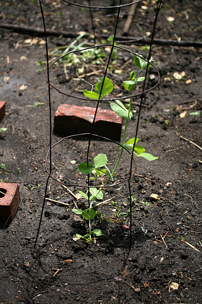 with these past 2 days of very hot and dry weather, i stopped by the garden to water my plants. the peas are doing well, every time i visit they're a little bit bigger than before. my only regret is i didn't plant more pea plants; not sure how many pea pods i can actually harvest from my 5 plants (4 if you don't count that one prematurely damaged stunted pea plant).