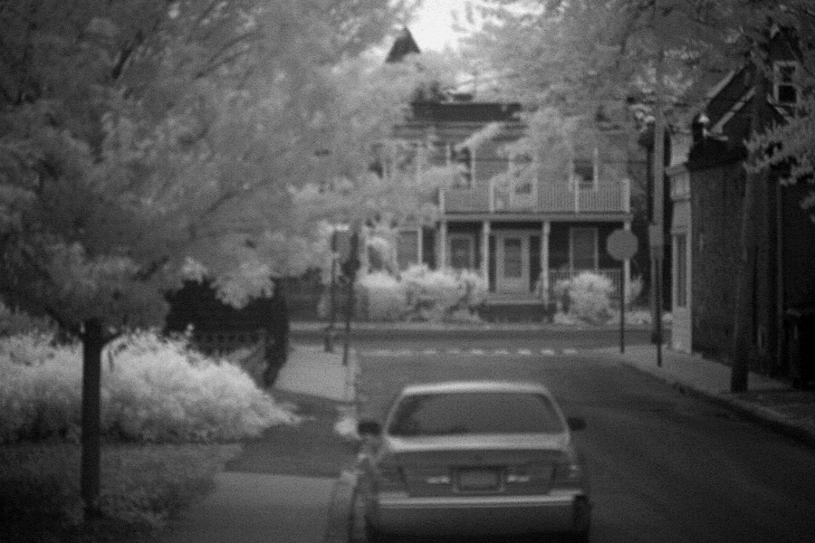 after alex left, i rummaged through some camera bags and found my old infrared filter. with a 52mm diameter, it perfectly fits my 60mm macro lens. these DSLR's aren't designed to take infrared photos (unlike my old nikon coolpix 4500), so i can't see anything through the viewfinder, but it'll still take a usable photo. the only trick is i have to focus blindly, so it's a bit of trial and error to get a clear photo. i want to do some more infrared photography this season.