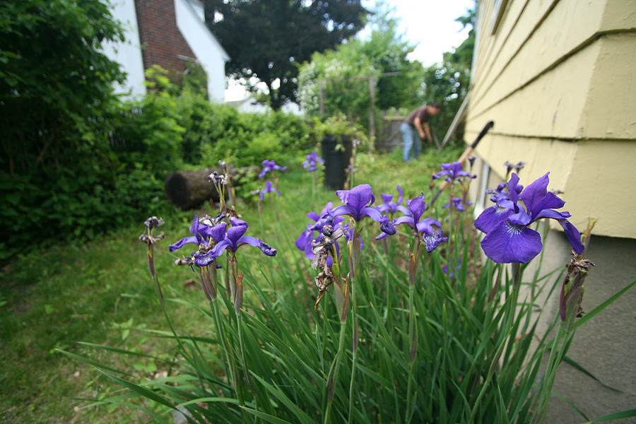 the sides facing down were so pristine that we even managed to recycle some of the old beams by just turning them over. i started to dig up the garden, pulling out the weeds and churning the dirt.