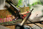 that's when i discovered i had to burn the insulation off of the wires first and once i did that, i managed to get stereo sound back in my headphones. i needed my father's help to solder the wires to the lead. we also coated everything in some epoxy-like glue to prevent the wires from detaching. i left the newly-repaired headphones in belmont to dry.