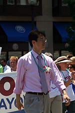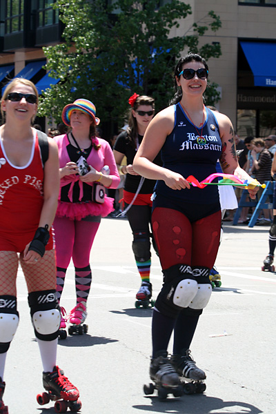 the weather today was perfect, in the 70's with a blue sky and some wispy clouds, a far cry from our week of overcast. this year's pride parade was better than last year in that the weather was nicer, but it does seem a bit scaled back. nevertheless, it's one of the more colorful and festive parades in boston.