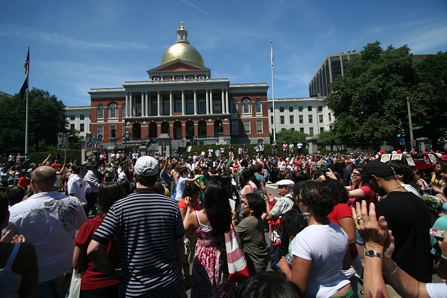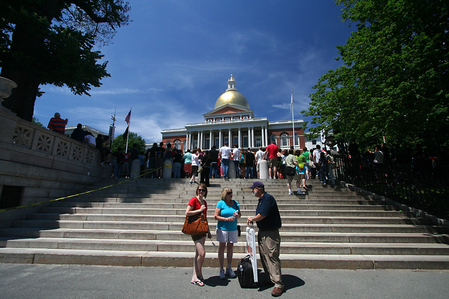when the procession ended, ed and the gang left to have lunch, while i decided to follow the parade down to boston common and up to the state house. i tried some wide angle shots but a telephoto is still more useful for a parade.