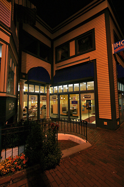 in inman square, and that wasn't exactly within walking distance. that's when i remembered there's an international house of pancakes in harvard square, and surely they'd be open late. so we made our way across the emptiness of harvard square. the only signs of life were cabbies waiting for fares and the few homeless people sleeping in secluded alcoves.