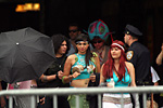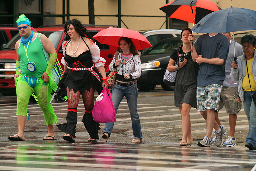 i decided last year that the best parade in these here parts is the annual mermaid parade down at coney island, new york. the amount of eye candy is unmatched and the lack of corporate interference is refreshing. the new york halloween parade is a close second, but makes for difficult photography since it happens at night. a forecast of severe rainstorms in the NYC area almost made me cancel the trip however, but i'd been waiting for this parade since the end of last year's parade, and decided to go regardless of the bad weather.