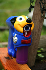i got to use the bubble gun i bought yesterday. first i dumped out the bubble solution that came with it, due to the fact that a warning label on the packaging said, "harmful if swallowed."