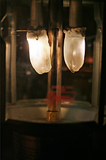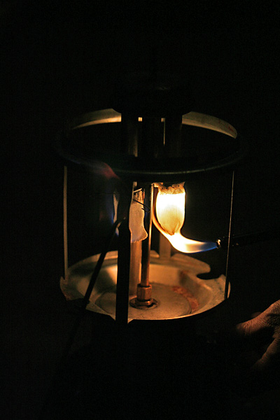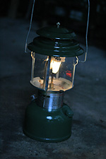 back in belmont, my father lit one of 3 coleman lanterns he had in storage after rediscovering a can of coleman lantern fuel. another lantern he'd used regular gasoline in the past, and it didn't burn very well. besides the noticeable gasoline odor, the flame also had a tendency to flicker. however, now with specialized lantern fuel, a lit lantern was pretty much odorless and gave a strong constant light. later we looked for lantern parts, thinking that we may need to replace the generator on that one lamp that was burning gasoline since it might be clogged with impurities.