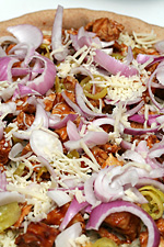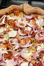 i made barbecue chicken pizza for dinner. i grilled 3 chicken breasts and cut them into small cubes before coating them with some barbecue sauce. 20 minutes of baking at 425 degrees later and i was done. 3 cups of flour makes too much dough for just a single pizza, i should scale it back to just 2 cups next time. i ended up with a lot of surplus crust. and 3 chicken breasts is also too much meat (although i couldn't find packaging portions smaller than that). i ate two hearty slices with a fork, saving the remaining 2/3 for tomorrow.