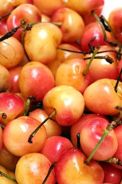 napa cabbages make their appearance this week. i didn't realize that however and bought from the first vendor i saw (when i could've shopped around), a large 3lbs. head, along with two daikon radishes, all for just $2. i have the necessary ingredients for making more kimchee! i also bought 2 bags of rainier cherries ($5), a pound of long hot peppers ($1), and a bag of plums ($2).