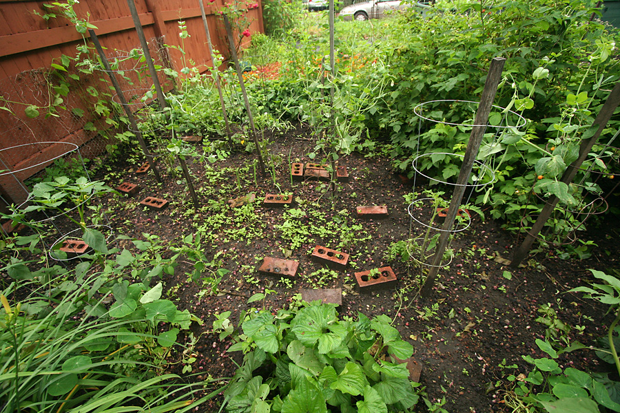 i've all but given up on my community garden plot. i was pretty optimistic during the spring but once the mulberry tree started to drop berries all over my garden, i just gave up. the carpet of mulberries end up rotting and smelling and then attracting pests and diseases. every time i visit the garden, the bottom of my shoes get coated in mulberry jam which i either have to wash off when i get back home or risk tracking mulberry pulp into the house. the berries also shift the chemistry of the soil, making it more acidic. that's why i've devoted more attention to the belmont garden, where the vegetables get plenty of sunlight and i've yet to see a single pest, not even a slug. i'm seriously re-evaluating what to grow in the community garden for next year. maybe just a perennial flower garden that i never have to take care of and one that i won't mind getting stained with mulberry juice for a few weeks at the start of the summer. a plot for experimenting but not a plot for growing vegetables.