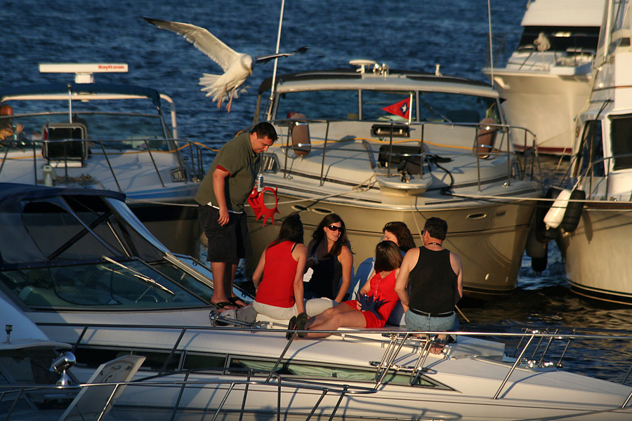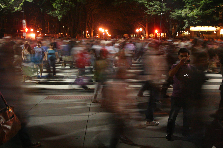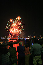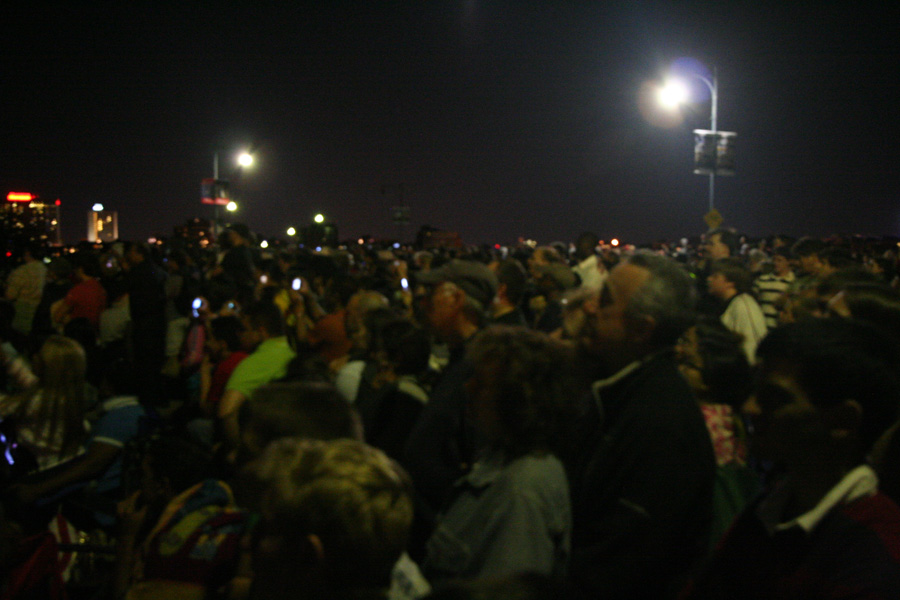 3 hours of waiting before the fireworks started at 10:30. later i'd discover most of my fireworks photos were blurry (i set the focus ring to manual infinity, was that wrong?), but i'd stopped taking photos halfway through the 30 minute show, realizing fireworks are a spectacle best enjoyed live and not through a picture. besides, a photo could never capture the motion and the 3D aspect of the starbursts (videos are better, but who wants to watch a video of fireworks?). next time though, i'll use my tripod and i'll also bring a lawn chair. do what the pros do! there was a little kid behind me who'd never seen fireworks, talking and giggling the whole time, causing people to laugh as well. also funny was some joker yelling, "woo! america! awesome!" every time a new starburst appeared in the sky.