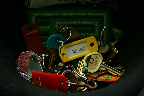 my neighbor jen caught me peeking into my mail slot. "what're you doing, trying to break into your own place?" she asked, jokingly, not yet realizing she hit the nail right on the head. "actually, yes," and i then told her a very abbreviated version of how i got locked out. after she heard my plan, she asked if i needed a wire hanger. "already got one," i replied, pulling it out of my backpack, ready for action. unfortunately it wasn't long enough to clear some letters blocking my view of these salvation keys. i went down to the basement (my basement can only be accessed from the outside, in case you were wondering) and got a long aluminum tube. if you were to pass by my house, it'd look like i was trying to pole vault into my mail slot. i started to knock things off of the shelf by i didn't see the keys. the whole morning had been like that, optimistic joy turning into dejected sadness.