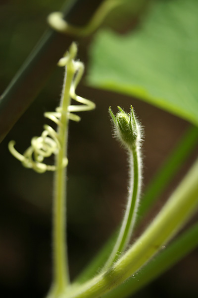 the mystery melon has started to produce flower buds. not sure even after the flowers bloom that i'd be able to tell which kind of melon it is. but it won't be long before the fruits start appearing (especially now that the sun has returned), so i'll find out soon enough.
