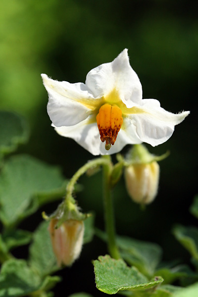 the potatoes are also blooming, which gives me an opportunity to see the similarities in flowers between close cousins the tomato and the nightshade. the potato flowers remind me of horse nettle flowers, so it isn't surprising that it too belongs in the same family.