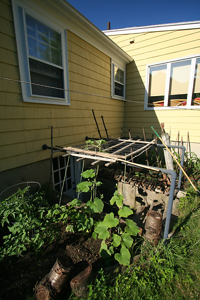 i made my way to the cafe to drop off some supplies. my father took me back to LG, where renovation work had already begun in the basement. i then went to belmont, to see the dog and tend to my garden.