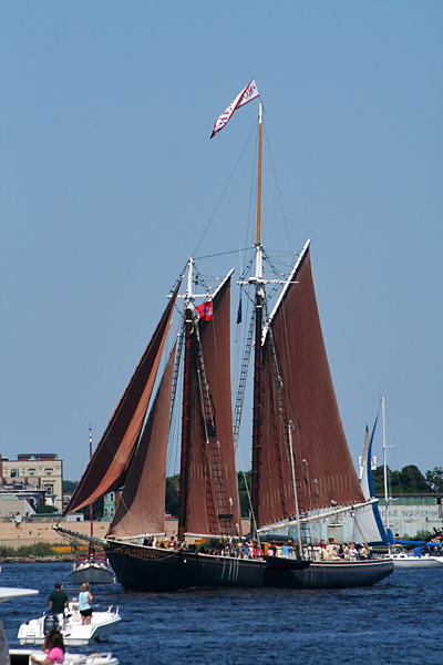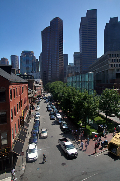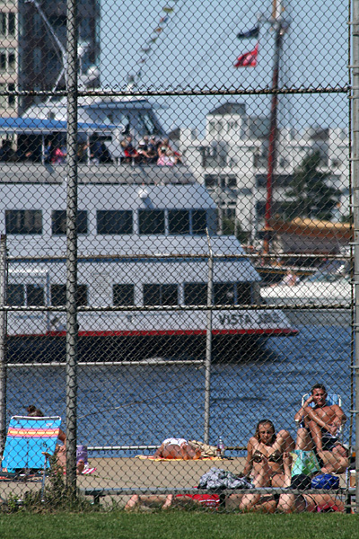 i bumped into one of the new owners of the former LG restaurant at haymarket this afternoon. she asked me what i was buying and took me to a few of the vendors she knows so i could get a better deal. they knew her well enough to let her rummage through their boxes behind the counter, picking the best produce. i also got some free samples, which i refused at first, but fresh fruit was literally shoved into my face so i couldn't say no. later i helped her carry some boxes to the parking garage, where she parked her car. she was very apologetic for making me working (even though i volunteered), and gave me a bag of cherries as compensation. afterwards i took a tour through the north end again, cutting across the greenway, which on a sunny summer day get crowded with sunbathers (not sure if that was the original intention of the park designers). from the shoreline of the north end i could make out a few tall ships in town for the weekend. ships really aren't my thing and seeing the crowd of people, i didn't really want to wait in line to get onboard.