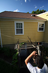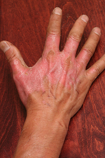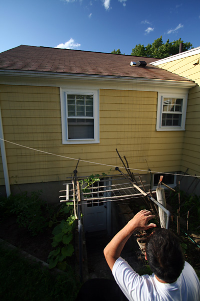 the side of the house with some galvanized rabbit wires. we clipped off a certain length, bent it until it stayed flat, then with a ladder crimped the top ends to the roof gutters while either tied the bottom or crimped the ends under the lowest shingles of the house. my forearms were covered in small cuts from the sharp exposed prongs. all this work for the squash (we have a total of 4 plants), which my father believes will need a lot of climbing space in order to bear a lot of fruits. (for those who're curious, this is my father's hand on the road to recovery.)