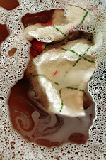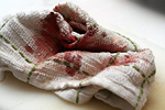 back at my house, it was still a crime scene. the buck knife was still on the coffee table, along with the broken pen cap. i quickly closed the knife and put it away, not wanting to be reminded of what just happened. in the kitchen was the initial blood-soaked dish towel that i used to wrap up my bleeding thumb. the kitchen and bathroom sinks were both splattered with dried blood. while dried blood is tough to remove from hard surfaces, it actually comes off quite easily from clothes (when presoaked with detergent).