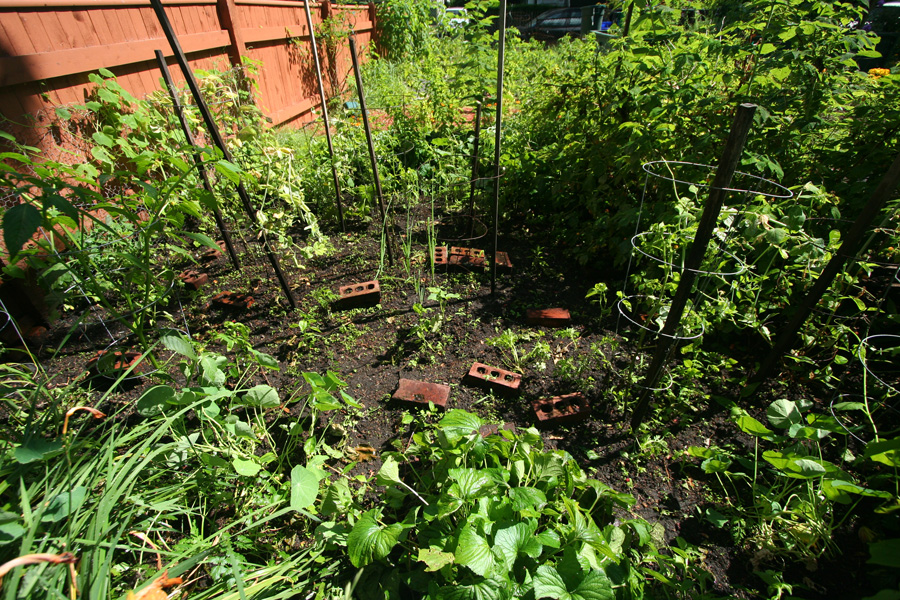 i also visited the community garden for the first time since saturday. i did some weeding and gave all the vegetables a thorough watering. my tomato plants look anorexic. hopefully now that the weather has improved, the plants can take better advantage of the sunshine.