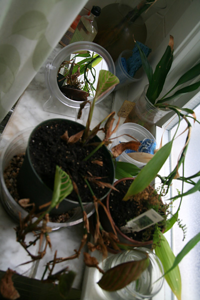 it got hot enough today that i did two things: unplug the heaters on my aquariums (the room temperature is already higher that what i set them at) and started using the oscillating fan. even then, the humidity was high enough to first make my living room really stinky but also to keep me in a perpetual state of stickiness.