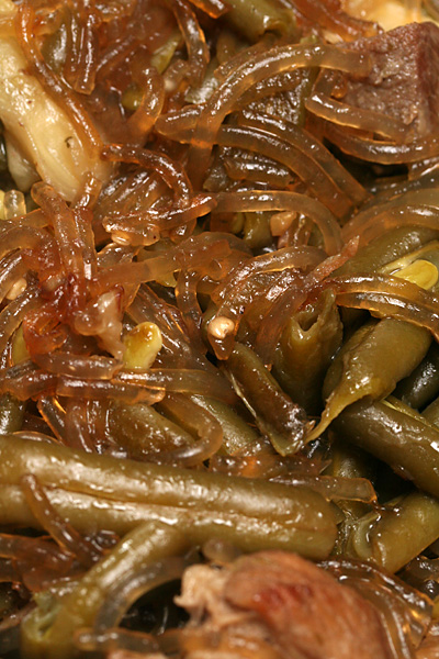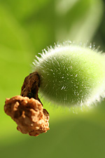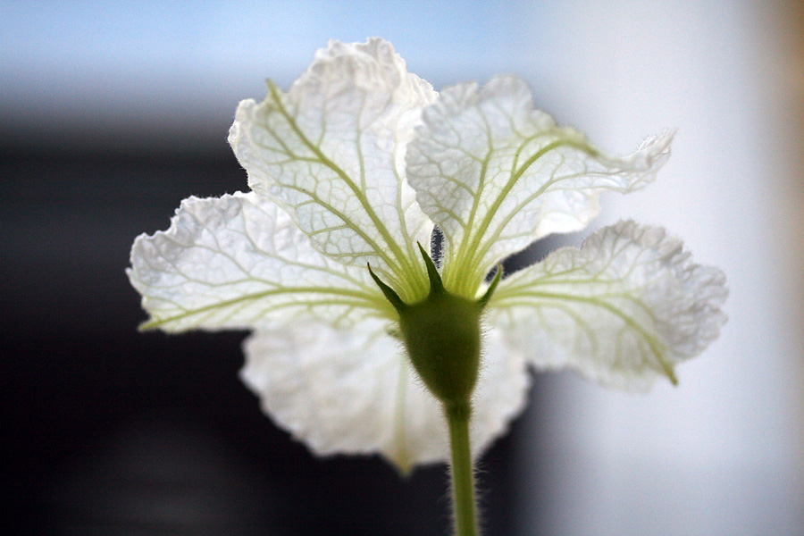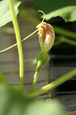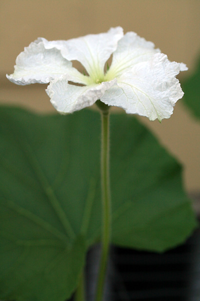 my mother was impressed that i could still use chopsticks with my left hand; i was a little surprised myself, having never tried it before (until a thumb injury forced me to improvise). after dinner, i went back outside while there was still a bit of light to check out the blooming calabash flowers. tonight there was one male and two females. i was hoping to catch maybe a pollinating moth but no such luck. obviously there's some kind of pollination happening from the growing gourds, but it happens in the dead of night apparently, when nobody is watching. the flowers themselves have no perceptible fragrance (unlike moonflowers, which also bloom at nights), but it's doing something to attract potential pollinators.