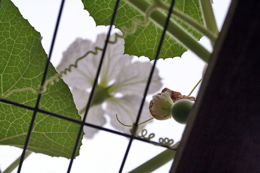 the second point of interest in the belmont garden are the calabash gourds. last week was just flowers, but this week i saw a few tiny gourds and one big one (a few inches long). all this action from just one plant alone; 3 others are trying to catch up. elsewhere in the garden: