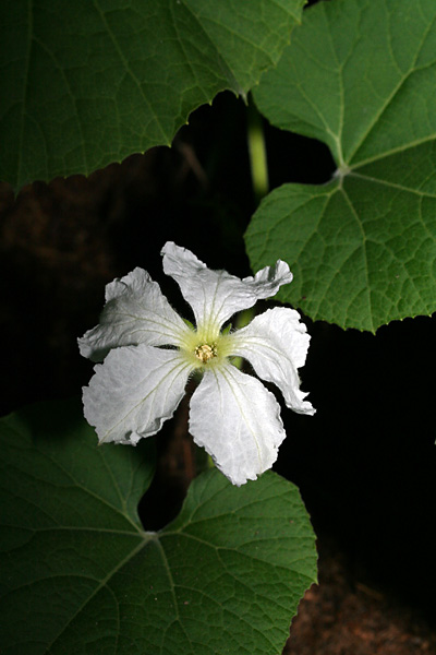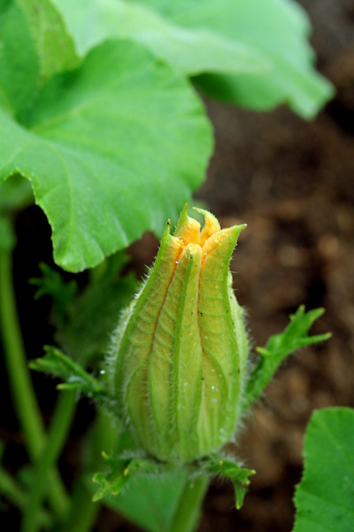 i made another belmont garden discovery today. of the 4 supposed calabash gourd plants, only one of them is a calabash, while the other 3 are an unknown variety of squash. the woman who gave them to us, even she didn't know what she had, and i wonder if these are 2nd generation stock grown from hybridized seeds. if that's the case there's no way to tell what we have until the squashes and gourds are fully developed, and even then it could be a mixture of two different squashes/gourds. how i figured this out was when i saw a large yellow flower on one of the plants. calabash only have night blooming white flowers. a yellow flower could only mean it's a squash of some kind. that totally explains why these flower buds looked nothing like the calabash flower buds. it also explains why the single calabash plant is growing way faster than the other 3 squashes. unfortunately these squashes don't seem to want to climb, despite the fact that my father and i build these complex wire trellises for them (thinking they were climbing calabash gourds). it'll be interesting to see what kind of squash we'll get.