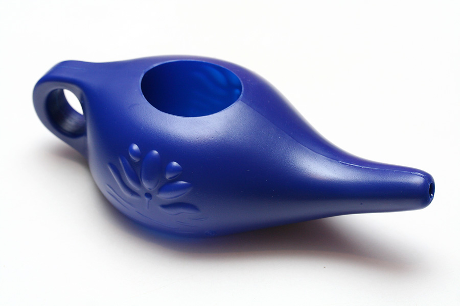 i couldn't wait to have my first neti pot experience. i mixed a quarter teaspoon of diamond fine salt with some warm water. i put one end of the neti pot spout to my nose and then leaned forward to let the water drip out of my other nostril.
