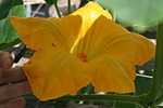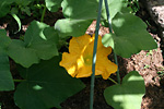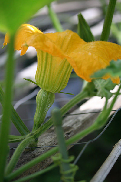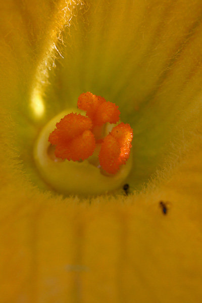 there were two flowers, a female and a male. i didn't see any flying insects but there were some ants hanging around inside the flowers. not confident that the bees have done their job, i ended up working some hand-pollination magic by plucking off the male squash flower and rubbing the two flowers together.