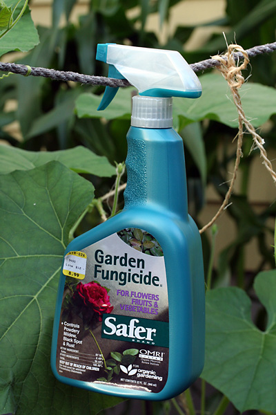 what i wanted was this product i saw online called serenade garden disease control. instead of chemicals, it employed an active bacteria strain effective against a whole range of plant diseases. however, i couldn't it anywhere, so i ended up getting a bottle of safer garden fungicide from the hillside garden store. it's also an organically-approved solution that uses elemental sulfur to fight fungal diseases.