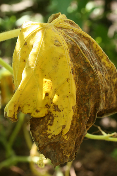 finally, after inspecting all the garden plants, and giving each one a good drink of water, i sprayed the squash, gourd, and cucumber plants. yes, even the cucumbers have started to show some spots on their leaves which look to be the early stages of powdery mildew. we've had a few days of nice sunny weather so the mildew have been kept to a minimum. the leaves that were affected have either turned yellow or crumbled to a brown crunchy mess. i trimmed those off, hoping to keep the disease from spreading.