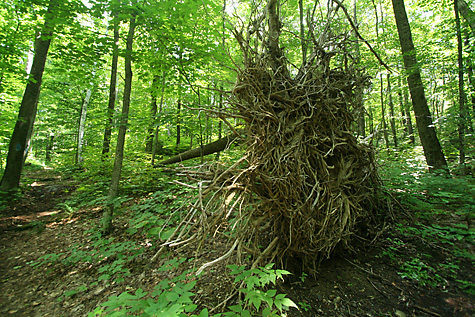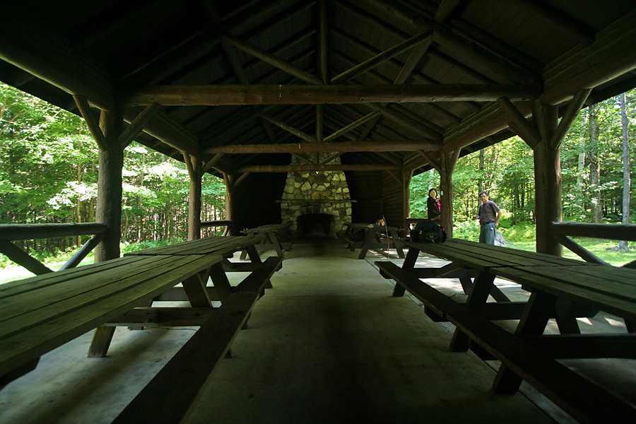 scenic-wise, there isn't a lot to see on the trail. for the most part we were in deciduous forests with some pines the higher up we got. it was just half a mile on the CCC trail to the open picnic area (including a large picnic lodge) before the trail becomes the slack hill trail. a mile into the forest to the underwhelming scenic vista, then another 1.5 miles back to the campsite. the trail itself is pretty easy with a mild elevation and impossible to get lost, unlike the misleading and rock scrambling trails at the groton state park. for my money, i still prefer groton, with it's lake, picturesque summits, and hidden bog. coolidge is just too much forest, not enough variety.
